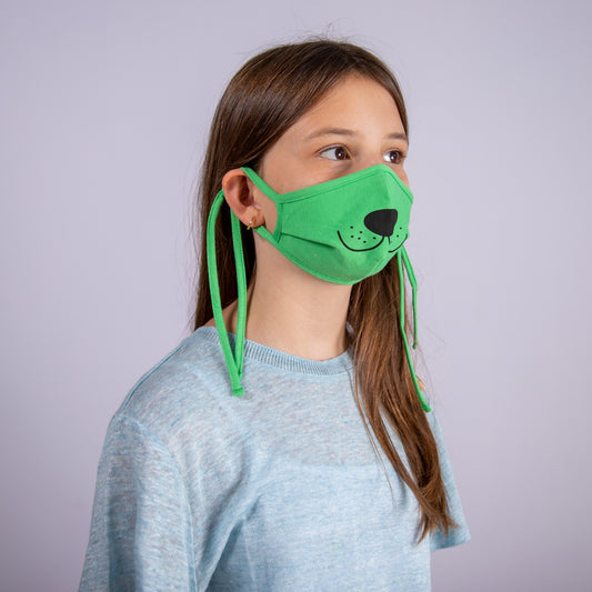 Kinder Stoffmaske "Bären-Kinder" rot und grün