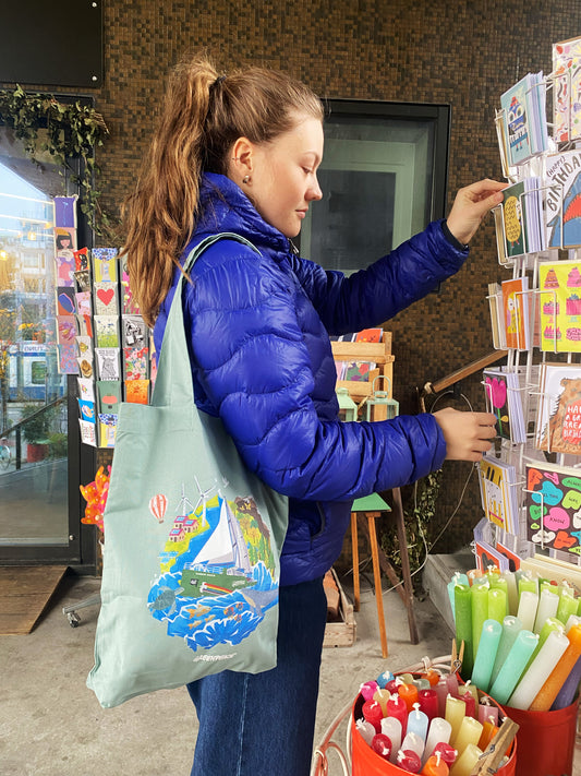 AusverkauftStofftasche "Boat Land Sea" Natur Slate Green