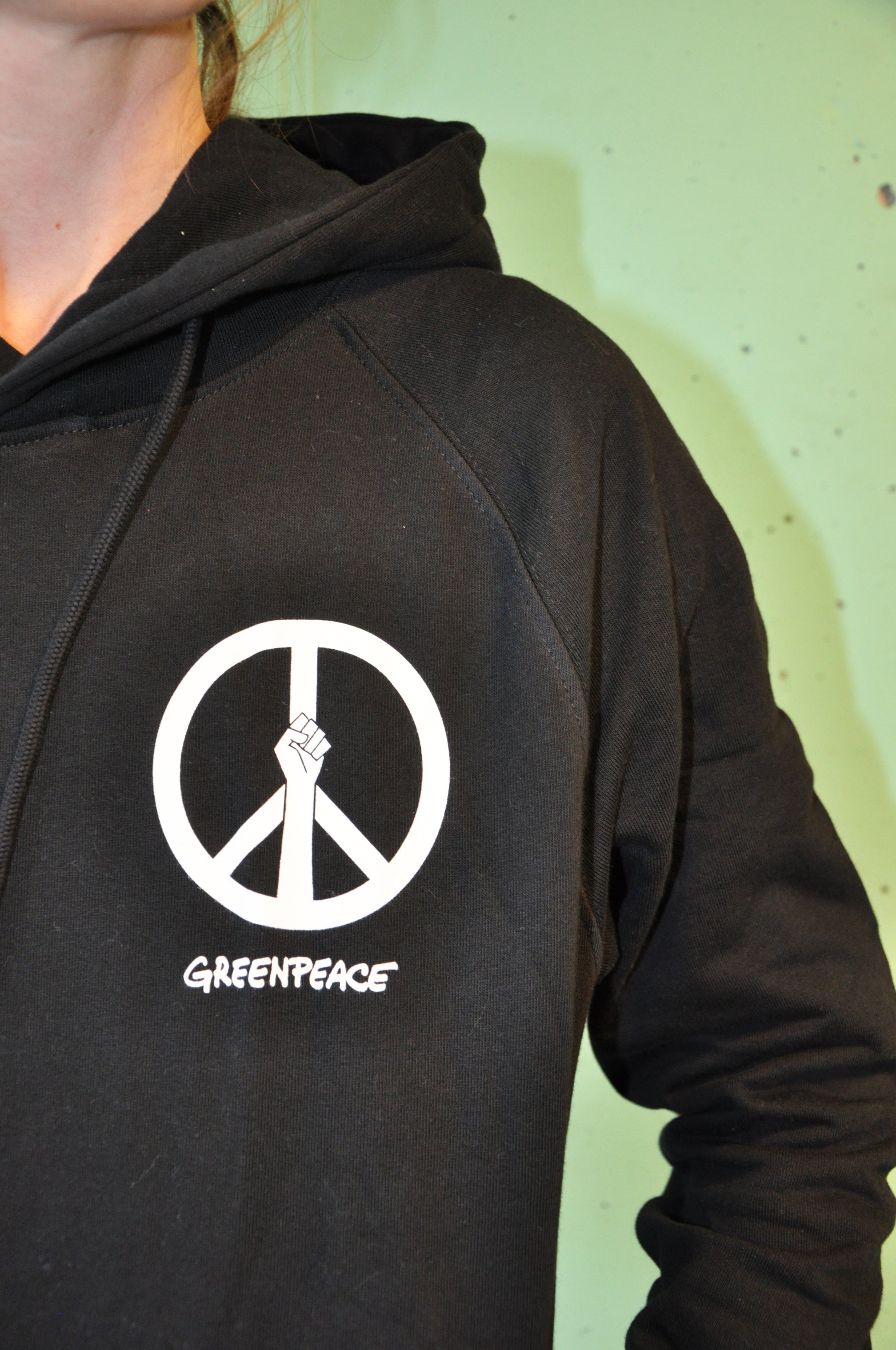 Eine klassische Kapuzensweatshirt in bester Bio-Qualität. Ein komfortabler Alltagsbegleiter aus extra schwerem Material. Richtig schön warm, gemütlich und langlebig. Mit coolem Peace Power Print auf der Vorderseite.